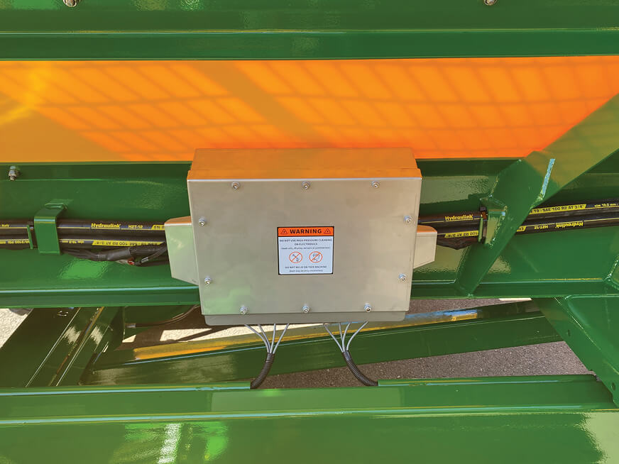 Keep it simple with a standard hydraulic clutch to ground drive set up or upgrade to the latest smart, accurate e-Spreader. This has integrated load cells and an automatic back door.